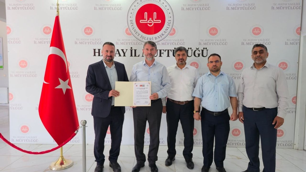 Afrin’de 2018 yılında hizmete giren müftülük binasında tam yedi yıl boyunca gururla dalgalanan Türk Bayrağı, anlamlı bir törenle Hatay’a teslim edildi. Afrin Müftüsü Salahaddin Kero tarafından teslim edilen bayrak, Hatay İl Müftüsü Mevlüt Topçu tarafından teslim alındı.