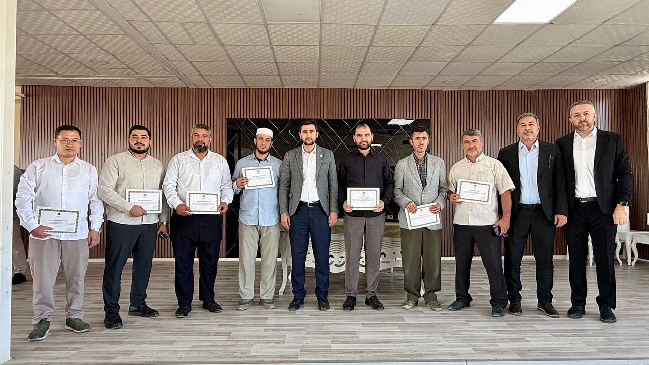 Toplantının sonunda anlamlı bir tören de düzenlendi. Geçtiğimiz Ramazan ayında fedakarlık göstererek hatimle teravih namazı kıldıran din görevlilerine, Diyanet İşleri Başkanlığı tarafından gönderilen başarı belgeleri İlçe Müftüsü Rıdvan Şahin tarafından takdim edildi. Müftü Şahin, görevlileri tebrik ederek çalışmalarında başarılar diledi.