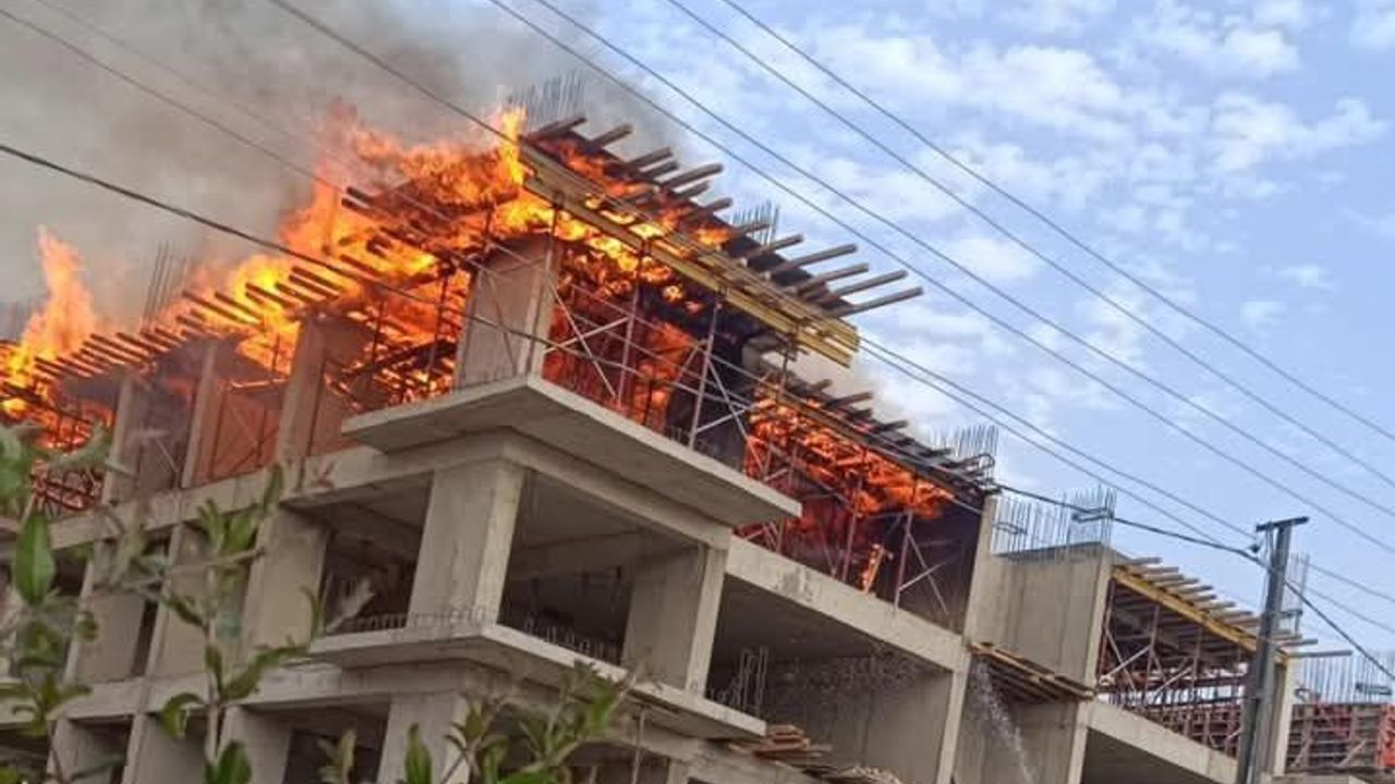Hatay’ın Antakya ilçesine bağlı Odabaşı Mahallesi’nde bulunan Rezerv Alan Öğretmenler Sitesi şantiyesinde bugün öğle saatlerinde yangın çıktı. Henüz nedeni belirlenemeyen yangın, kısa sürede büyüyerek şantiye alanında paniğe yol açtı.
