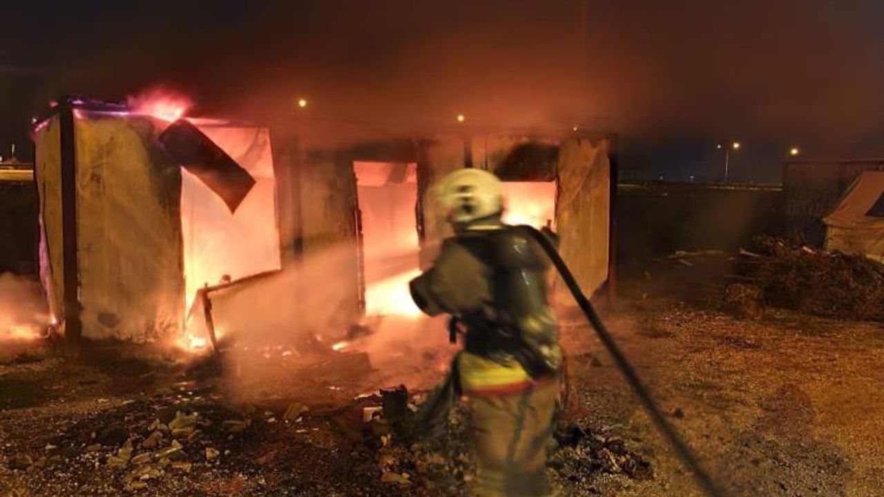 Hatay’da alevlere teslim olan konteyner yanarak kullanılmaz hale geldi.