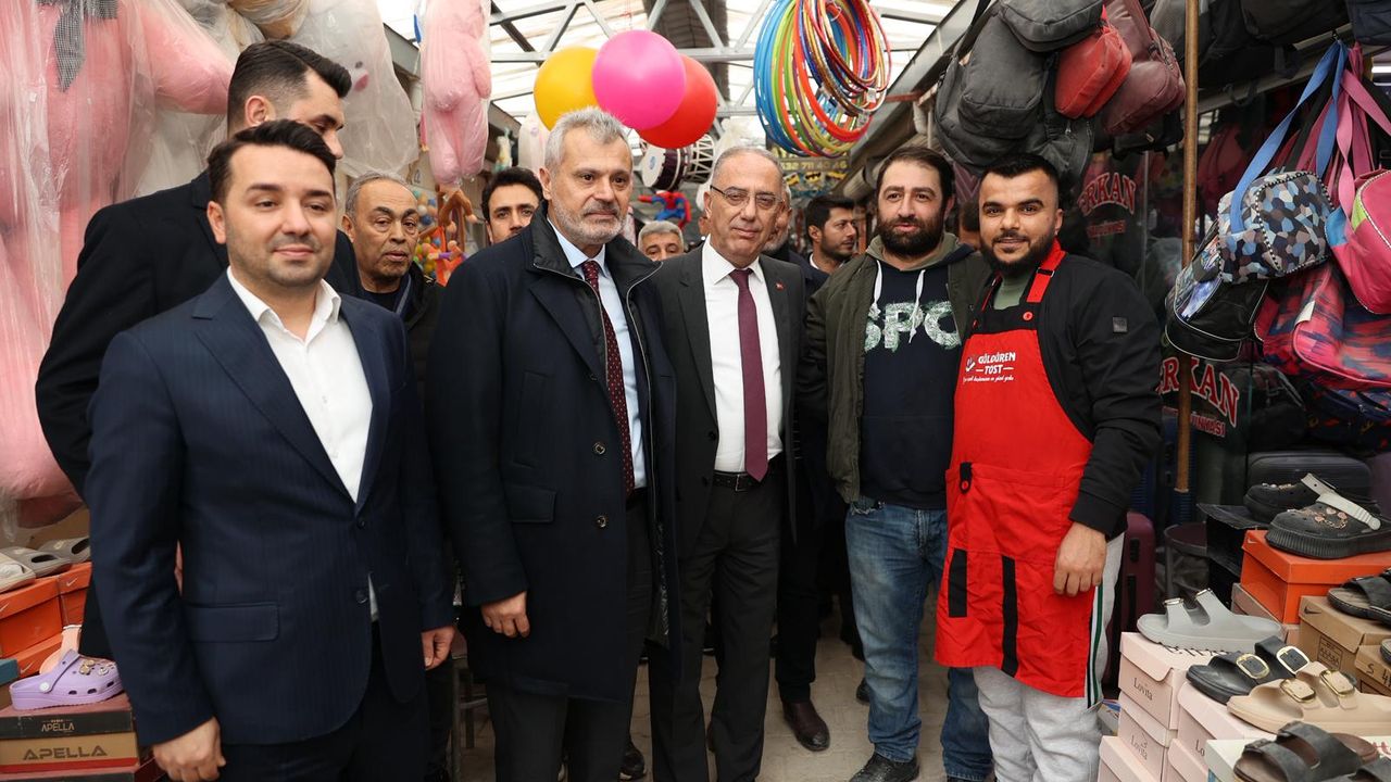 Antakya Belediye Başkanı İbrahim Naci Yapar, Hatay Büyükşehir Belediye Başkanı Mehmet Öntürk ve AK Parti Antakya İlçe Başkanı Mustafa Boyacıoğlu ile birlikte Ayakkabıcılar Çarşısı esnafını ziyaret etti.