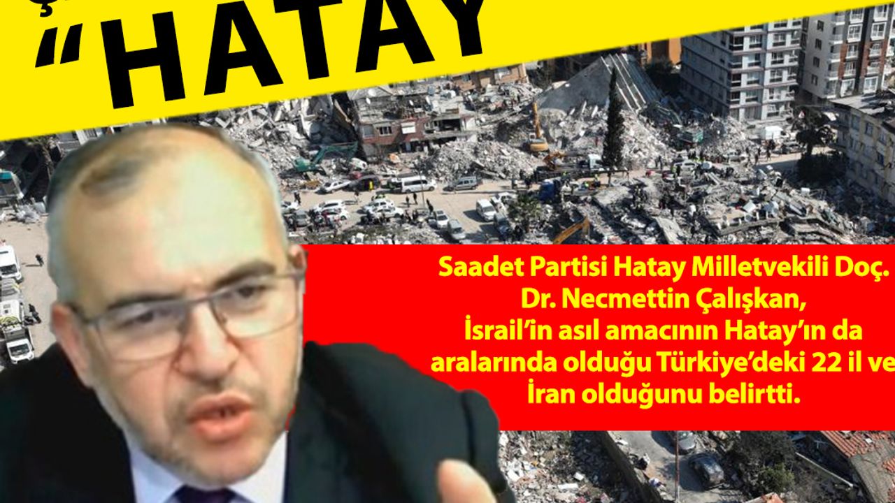 Saadet Partisi Hatay Milletvekili Doç. Dr. Necmettin Çalışkan, Filistin’e destek amaçlı gittiği Mısır’da yaptığı değerlendirmede İsrail’in asıl amacının Hatay’ın da aralarında olduğu Türkiye’deki 22 il ve İran olduğunu belirtti.