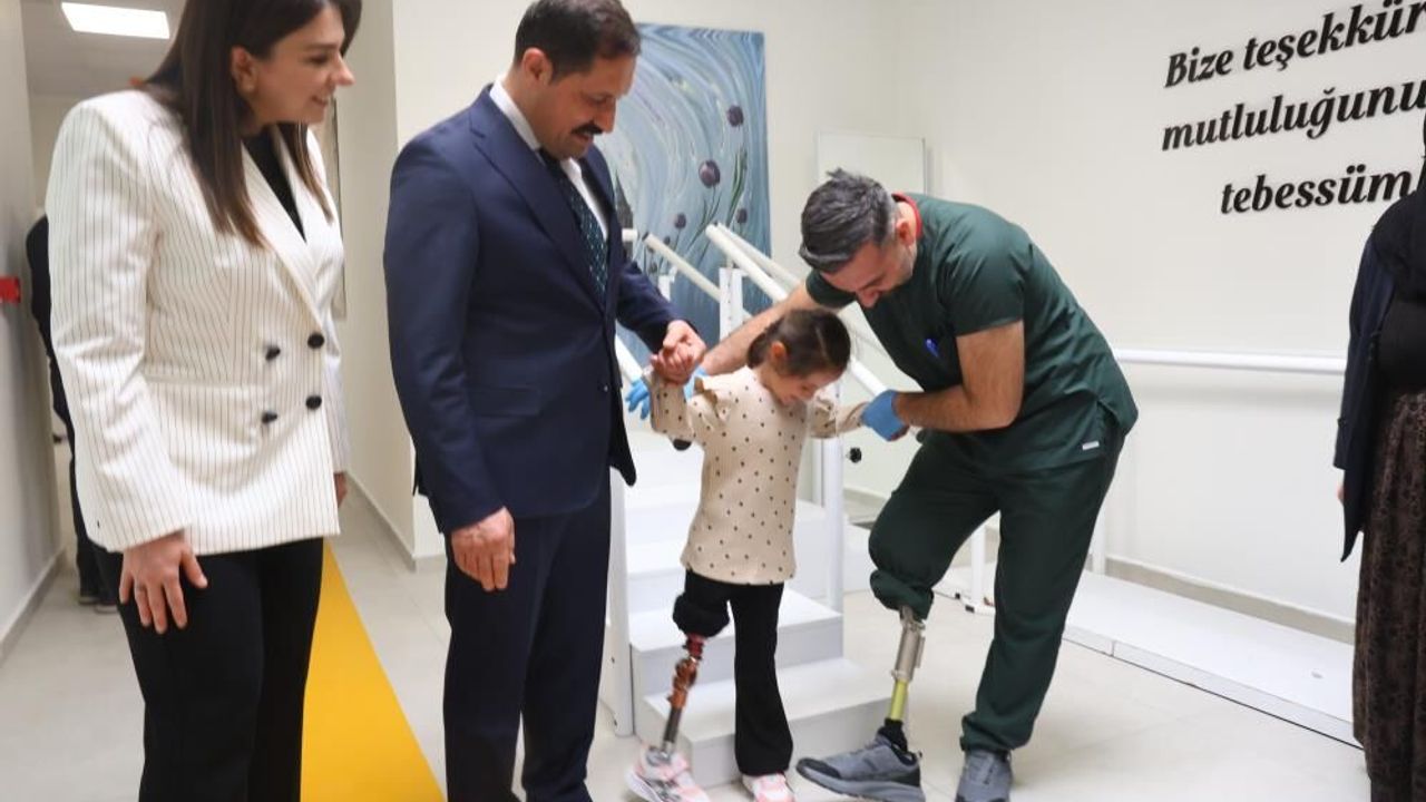 Depremde sağ bacağını kaybeden Zeynep'in protez bacağıyla ilk adımlarını atmasına ortak olmanın mutluluğunu yaşadığını belirten Vali Masatlı, "Bir çocuk için en önemli olan şey koşmaktır, yürümektir veya bir şeylere ulaşabilmektir. Bu zamana kadar o çocuğumuz bunu tam yapmaya çalışmış çok eksik yapmış. Bugün burada o protezden sonra onun yürümesi siz de gördünüz merdivenleri çıkıp tekrar merdivenlerden inmesi, tekrar çıkması, tekrar inmesi, onun hayatına başka bir heyecan, başka bir mutluluk kattı. Bizler de bugün onun elinden tutarak o mutluluğuna ortak olmuş olduk. Ne mutlu ona ve bize. Bundan çok ciddi derecede memnuniyet duyduk. İnşallah buraya gelen küçüğünden, yetişkininden, yaşlısından kim varsa buradan hizmet alabilecek tüm vatandaşlarımıza en iyi hizmeti vermek için arkadaşlarla beraber çalışmaya devam edeceğiz" ifadelerini kullandı.