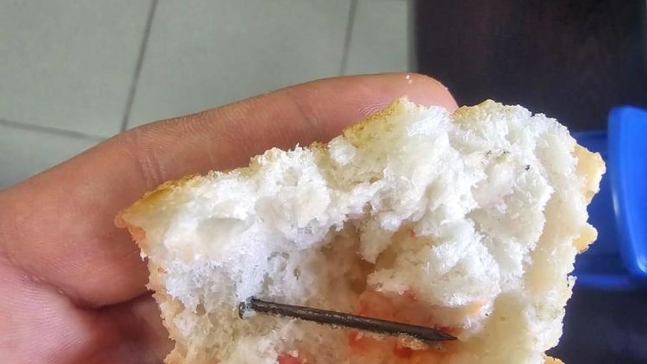 Hatay'ın Reyhanlı ilçesinde kahvaltı yapmak için zincir marketten ekmek alan ailenin ekmeğinden çivi çıktı. Eşinin ekmeği yediği esnada çivinin ağzına geldiğini ifade eden Mehmet Bozar, yaşananları anlattı.