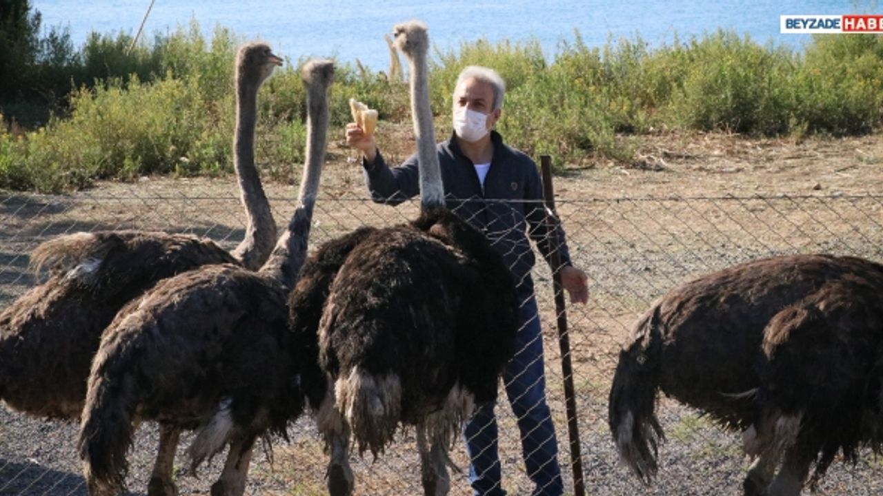 İskenderun ilçesinde yaşayan 70 yaşındaki Analan, emekli olduktan sonra deve kuşu yetiştiriciliğine merak sardı.