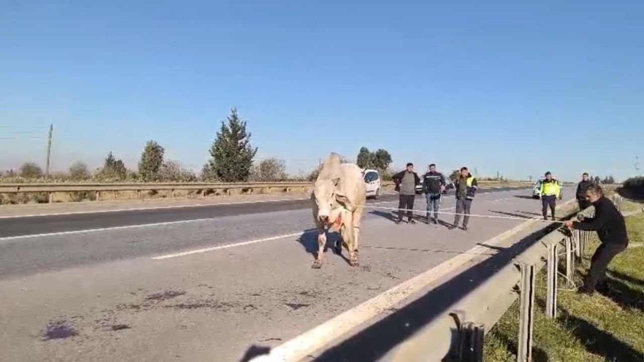 Hatay'da 2 kişinin can verdiği kazada tırdan kaçarak şehir turuna çıkan anguslar, ekipleri tarafından uyuşturucu iğneyle sakinleştirerek tek tek yakalandılar.