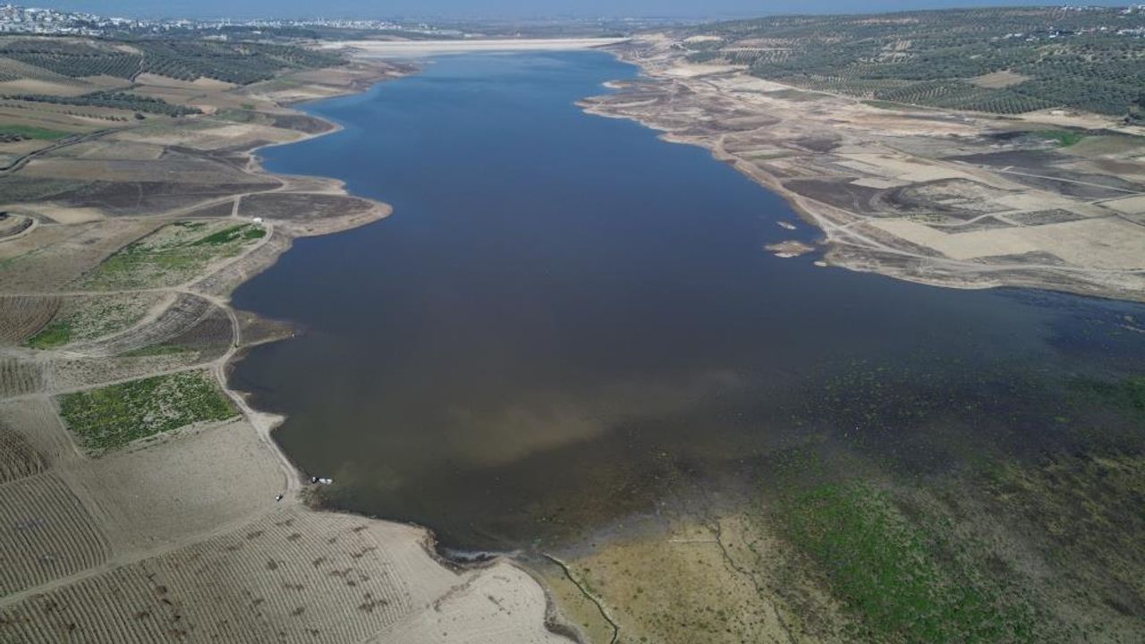 Hatay'da Amik Ovası'nın su kaynaklarından olan Yarseli Barajı'nda son 65 yılın en kurak yılının yaşanmasından dolayı doluluk oranı yüzde 5'in altına düştü. Metrelerce çekilmenin yaşandığı barajı vuran kuraklık havadan görüntülendi.