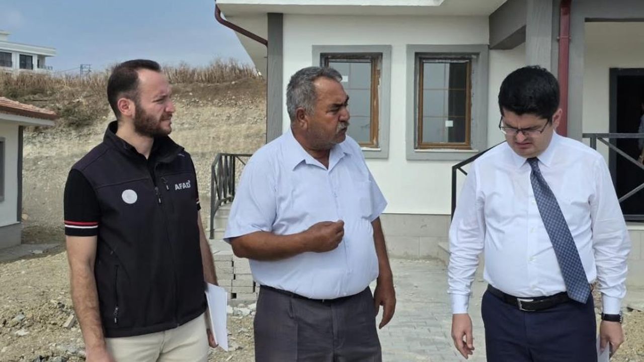 Hatay’da Arsuz Kaymakamı Fatih Eroğlu, Aşağı Kepirce Mahallesi'nde inşası süren 37 köy evindeki çalışmaları yerinde inceledi.