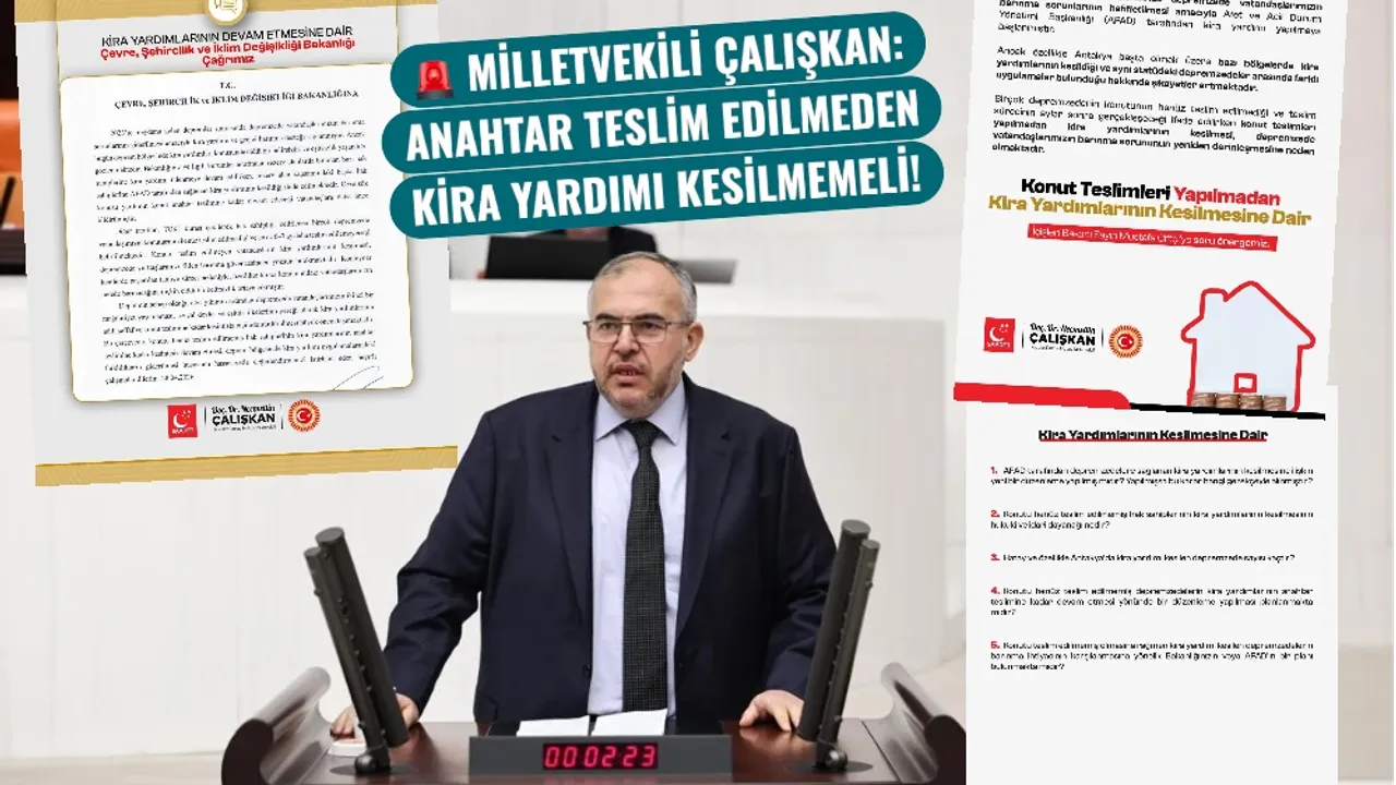 Milletvekili Çalışkan, Bakanlıklara ilettiği yazılarda, depremzedelere daha önce "kira yardımlarının konut anahtar teslimine kadar devam edeceği" yönünde söz verildiğini hatırlattı. Ancak son dönemde, özellikle TOKİ kurasında ismi çıkan fakat konutuna yerleşmesi için en az 6-7 aylık bir süresi olan vatandaşların dahi yardımlarının kesildiğine dair şikayetlerin arttığını vurguladı.