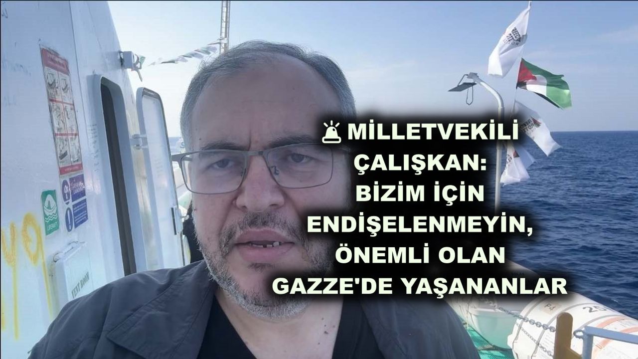 Milletvekili Çalışkan, kendileri için endişelenilmemesi gerektiğini belirterek asıl sorunun Gazze'deki insani kriz olduğunu dile getirdi. "Öncelikle şunu belirtmek isterim ki asla bizler için endişelenmeyin. Birkaç gün Allah’ın izniyle kolay şekilde geçer. Önemli olan Gazze'de yaşananlar. Gazze’de halen açlık, sefalet, yokluk, bombardıman, zulmün her çeşidi artarak devam ediyor" ifadeleriyle, uluslararası kamuoyunun dikkatini Gazze'ye çekti.