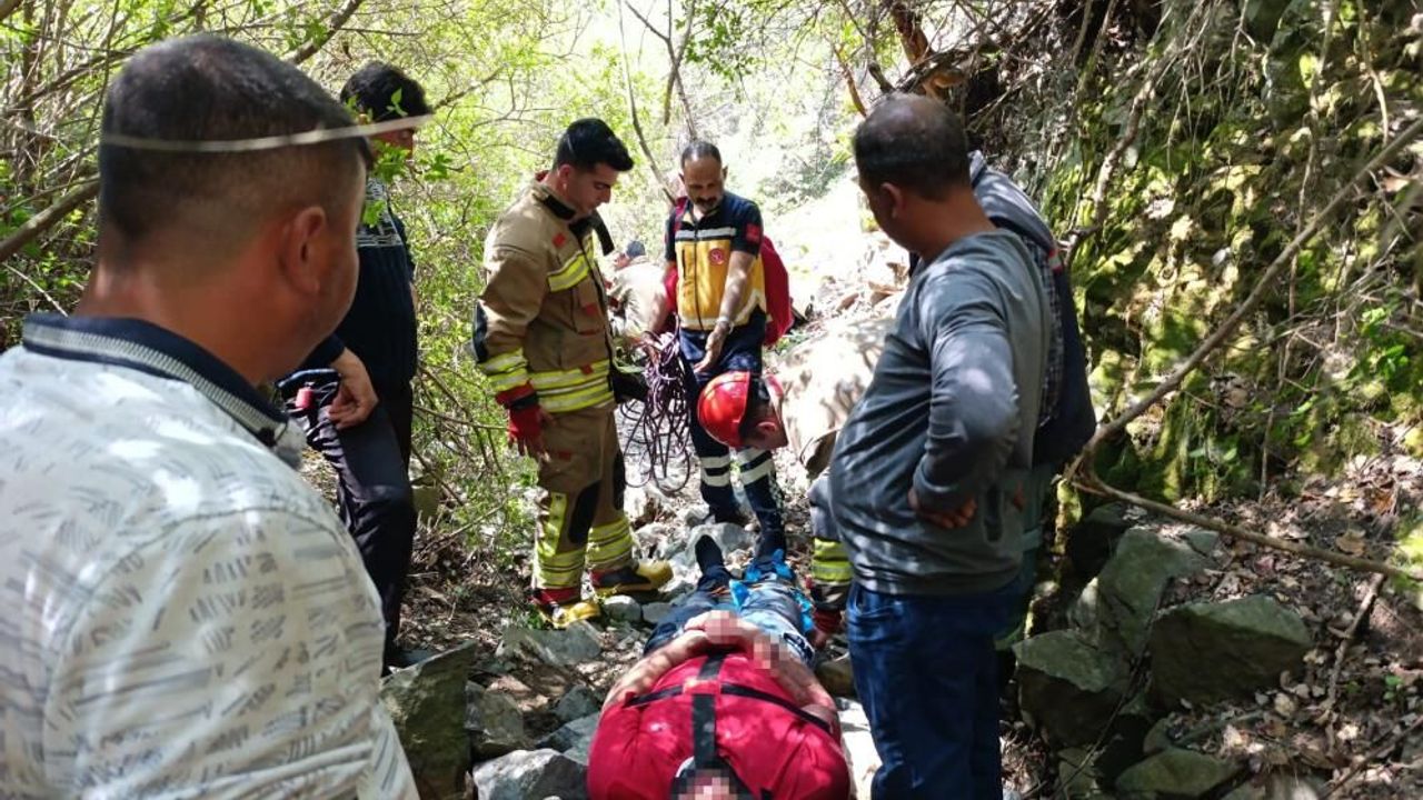 Hatay'da uçurumdan düşerek yaralanan vatandaşı itfaiye kurtardı.