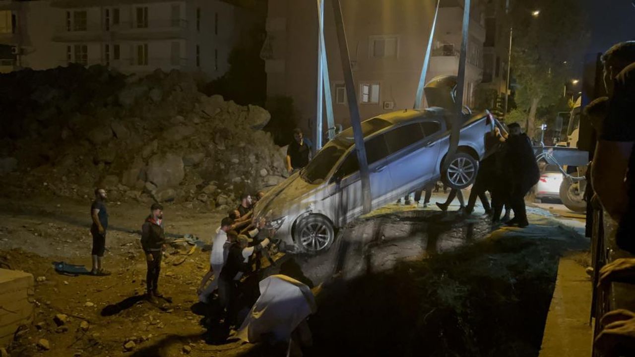 Hatay'da navigasyon takibiyle yolculuk yapan sürücünün kullandığı otomobil, yıkımı yapılan binanın boş arazisine uçtu. Kazada hasar alan araçtaki 5 kişinin burnu bile kanamadı.
