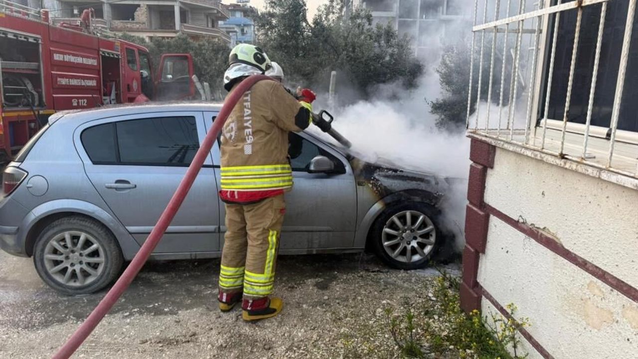 Hatay'da park halindeyken alevlere teslim olan otomobilde çıkan yangın söndürüldü.