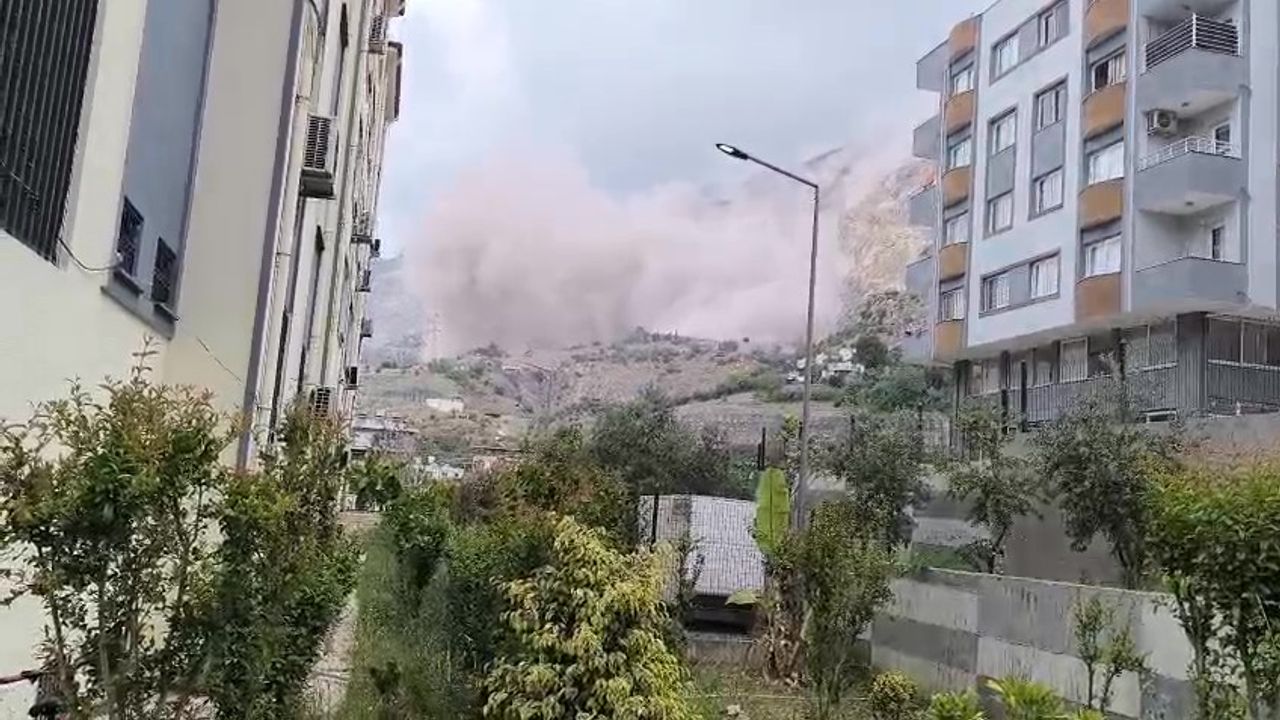 Hatay'ın İskenderun ilçesinde kent merkezine yakın bir noktada bulunan taş ocağında gerçekleştirilen patlamayla toz bulutu hakim oldu. Patlamanın etkisiyle depremzede vatandaşlar tedirgin olurken, mahallenin toz bulutu altında kaldığı anlar kameraya yansıdı.