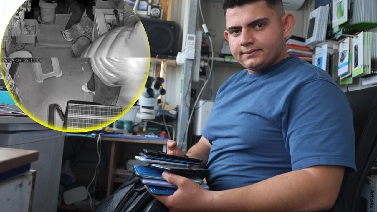 Antakya ilçesi Alaattin Mahallesi'nde yaşanan olayda, mahallede telefoncu dükkanı bulunan 16 yaşındaki Mert Uslu'nun 3 yıl önce açtığı iş yerini hırsızlar soyulmuştu. Uslu'ya ait iş yerinden 150 bin TL değerinde cihaz çalan şahısların hırsızlık anları kameraya yansımıştı. Hırsızın arkadaşını sadece sıfır telefonları alması gerektiği yönünde tembihlediği anlar ise kameraya yansımıştı. Görüntüler üzerine inceleme başlatan polis ekipleri, kısa süre içerisinde 16 yaşındaki U.Ö. ve 17 yaşındaki A.Z.'yi yakaladı. Çıkarıldığı mahkemece tutuklanan U.Ö.'nün 5, A.Z.'nin ise 8 suç kaydı olduğu ortaya çıktı. Çalınan teknolojik eşyalar da Uslu'ya teslim edildi.