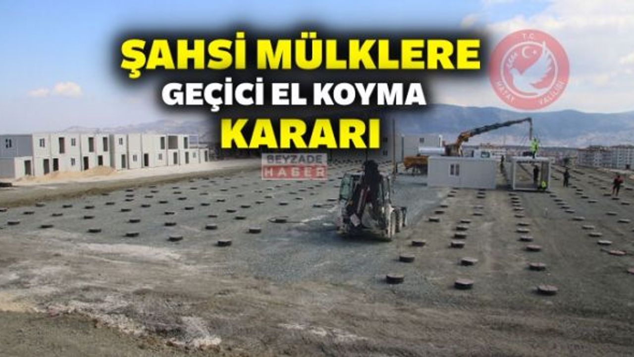 Bu kapsamda; Hatay Valiliği’nin 18.03.2023 tarihli ve E-18117118-952.01.04.12-521610 Sayılı Olur’u ile ekli listedeki taşınmazlara bedeli idarece bilahare ödenmek üzere geçici olarak el konulmuştur.