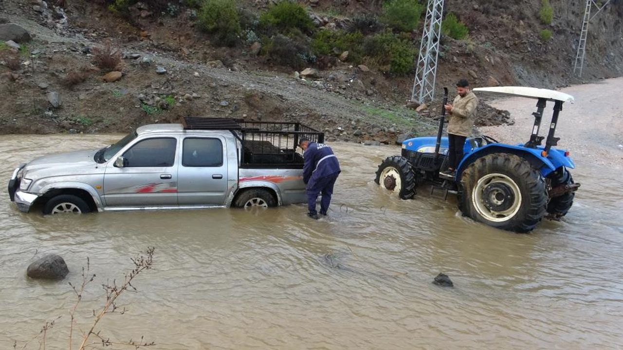 Etkili olan selle birlikte yolun suyla kaplandığını ifade ederek, " Gördüğünüz bu yol yağmurdan sonra böyle oldu. Yağmur yüzünden kayalar devrildi. Ben de ahırı kontrol etmeye geldim. Aracım mahsur kaldı. Sağ olsun traktör beni kurtardı. Geçen sene öyle değildi bu sene çok yağmur yağmasıyla birlikte bu aralar böyle oldu" dedi.