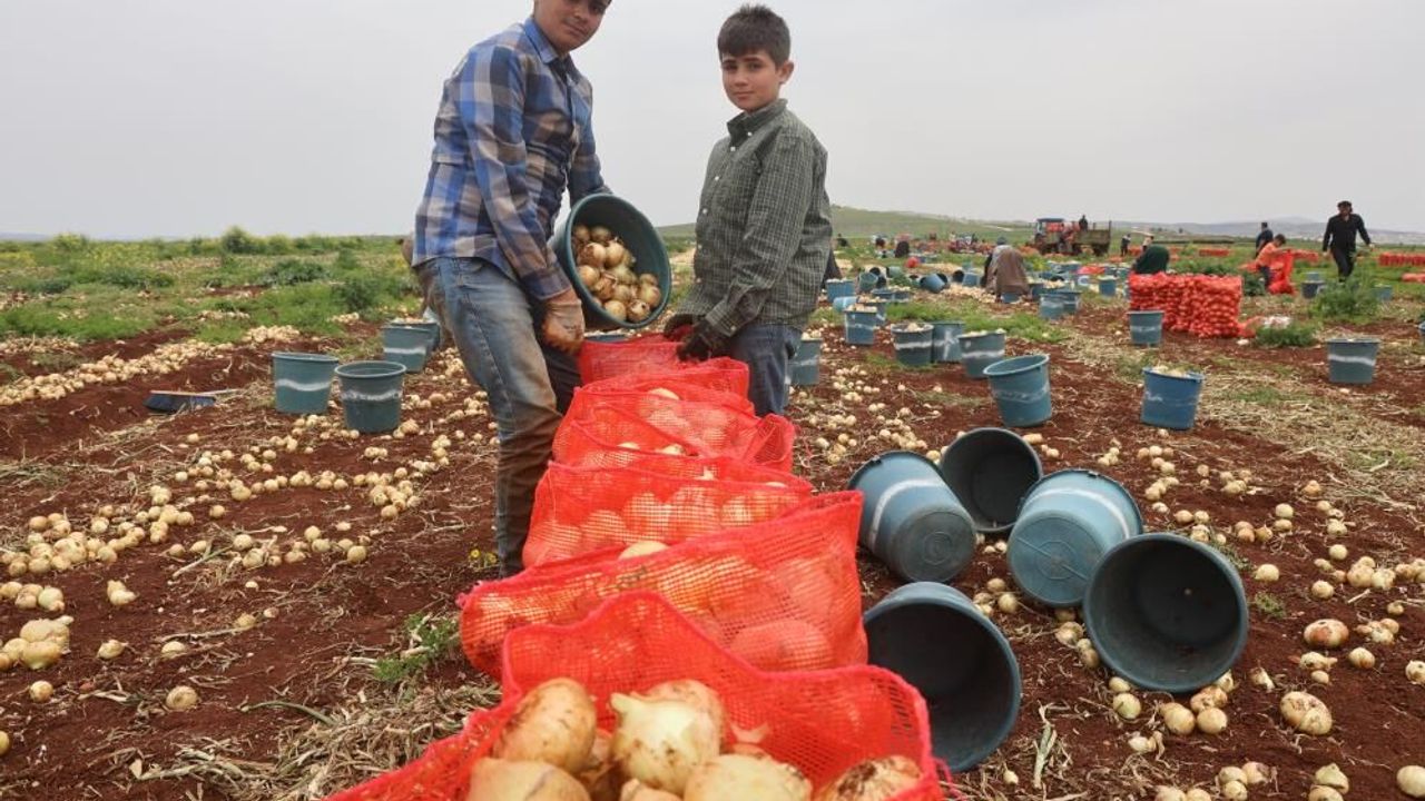 Hatay'ın Reyhanlı ilçesinde Suriye sınırına sıfır noktasında bereketli soğan hasadı başladı. Dönüm başına 5 ton rekolte beklenen soğan, tarlada 25 TL'den satılıyor.