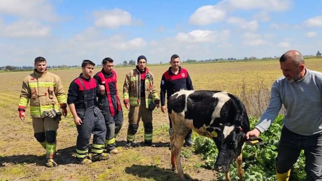 Hatay’ın Antakya ilçesinde otlanırken su kanalına düşen inek, itfaiye ekipleri tarafından kurtarıldı.