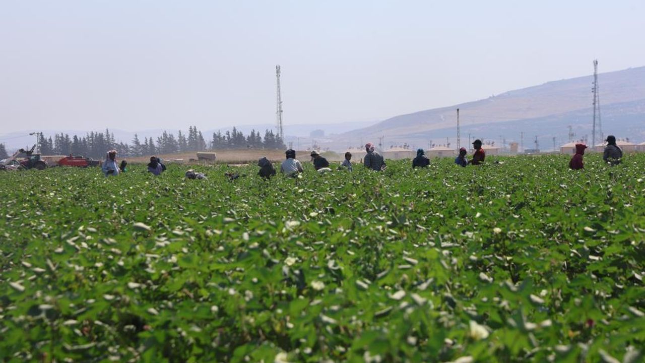 Termometrelerin 45 dereceye aştığı Hatay'da pamuk tarlasında çalışan tarım işçileri 650 TL yevmiyeyle güneşin altında zorlu mesaiyi sürdürüyor.