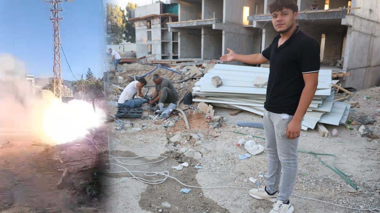 Hatay'da şantiye alanında iş makinesinin teması sonrası toprağa gömülü kablolarda patlama yaşandı. Yer altındaki elektrik kablolarının bomba gibi patladığı anlar kameraya yansıdı.